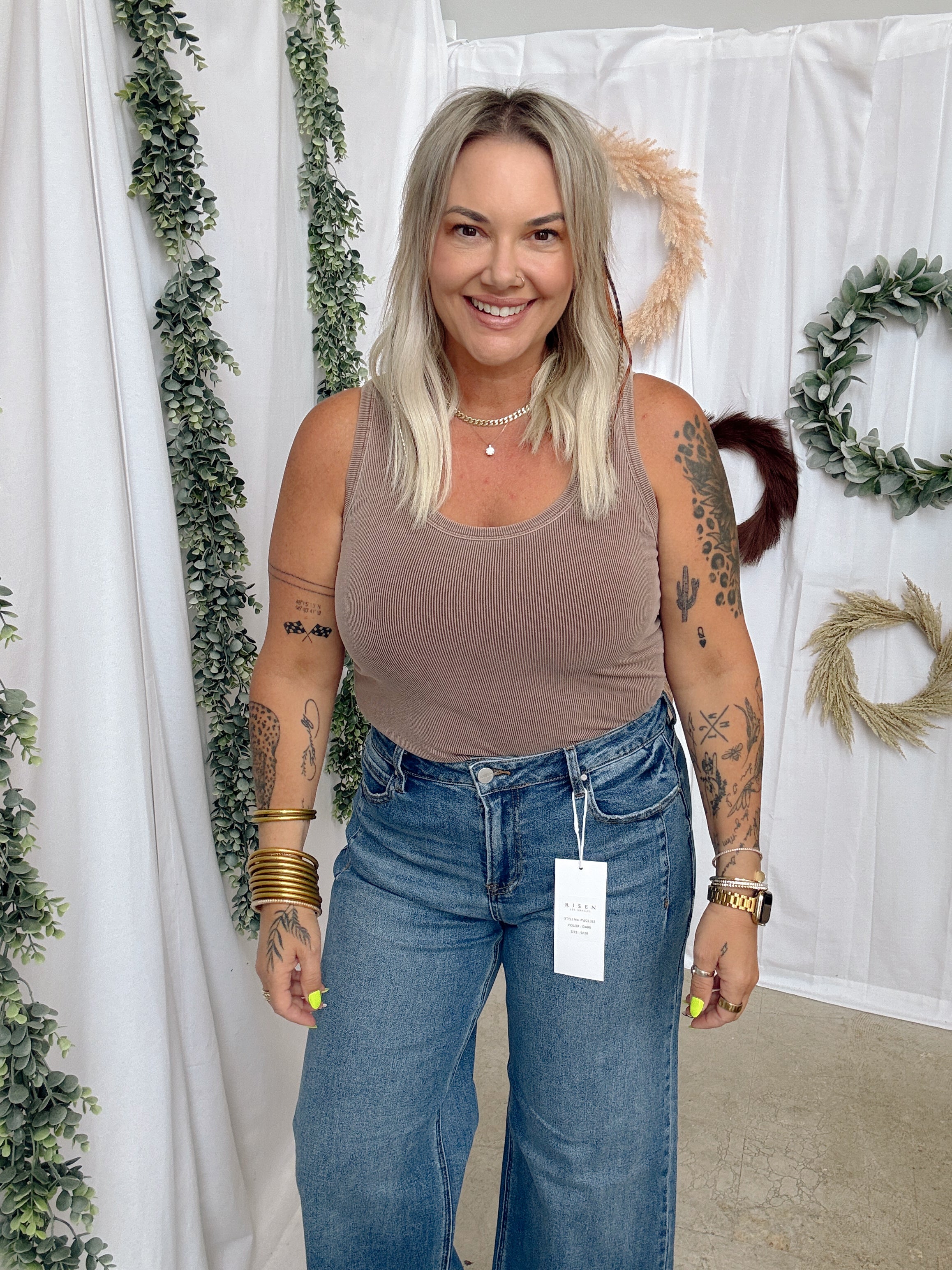 Effortlessly versatile, this garment-washed scoop tank top combines comfort with timeless style. Pre-washed for ultimate softness, it features a classic ribbed construction with raised seams along the neckline and armholes for added definition. The sleeveless design makes it perfect for layering through any season or wearing solo on warmer days. Lightweight and drapey, this everyday essential transitions seamlessly from casual outings to relaxed weekends.