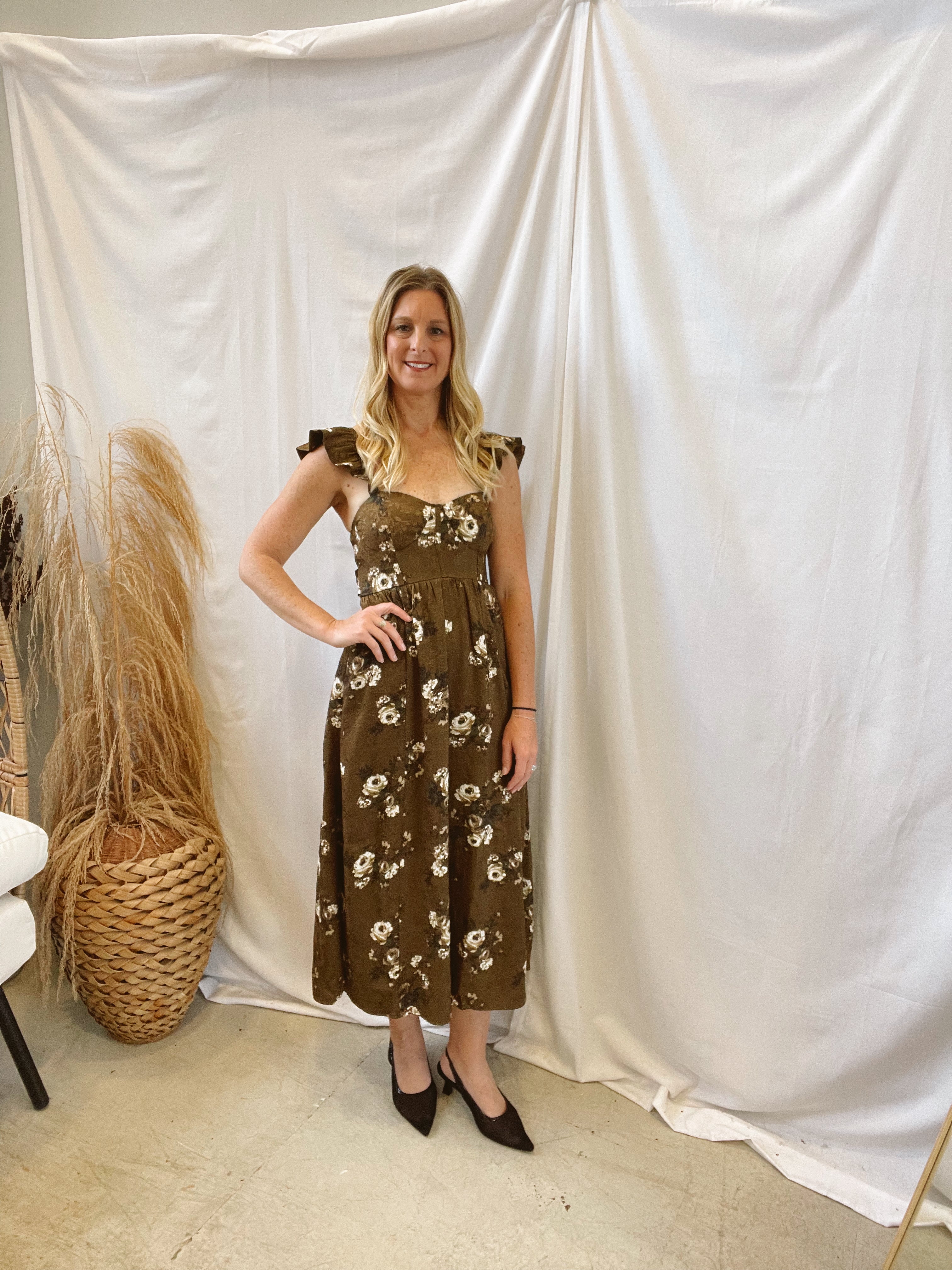 This playful midi dress features a sweetheart neckline and delicate ruffle elastic straps that add a flirty touch. The sleeveless design and A-line silhouette offer effortless movement, while the floral jacquard fabric creates a charming texture. Back smocking and a self-tie detail complete the look with a fun, adjustable fit. Fully lined for comfort, it’s perfect for twirling through spring and summer days.